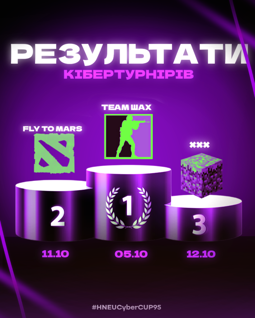 Увага! Турнір із Minecraft, запланований на 12.10, на превеликий жаль, не відбувся. Але не засмучуємося! Чекаємо всіх на наступних івентах та нових кібербитвах! 🔥