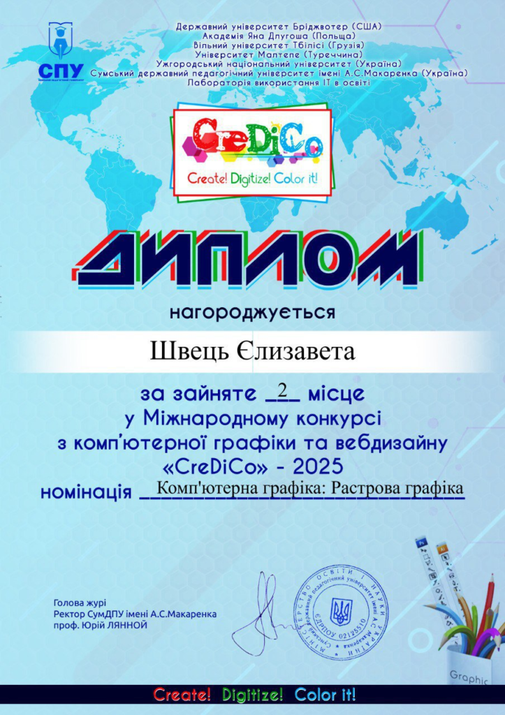 у Міжнародному конкурсі з комп’ютерної графіки та вебдизайну «CreDiCo – 2025».